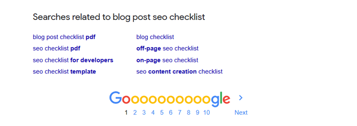 Ovo su srodne ključne reči za SEO kontrolnu listu na blogu sa ključnim frazama: